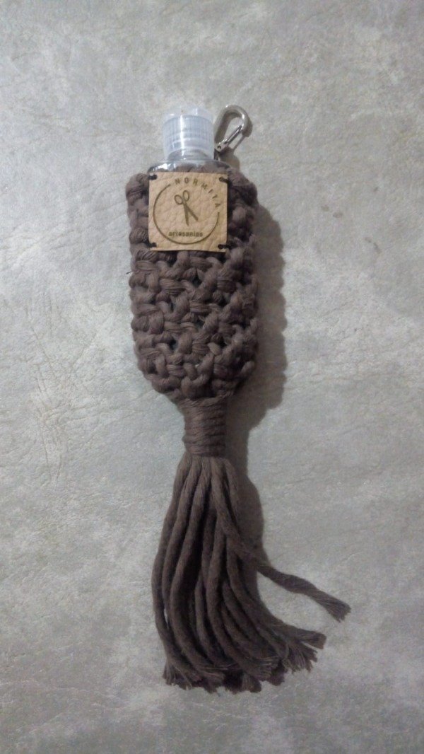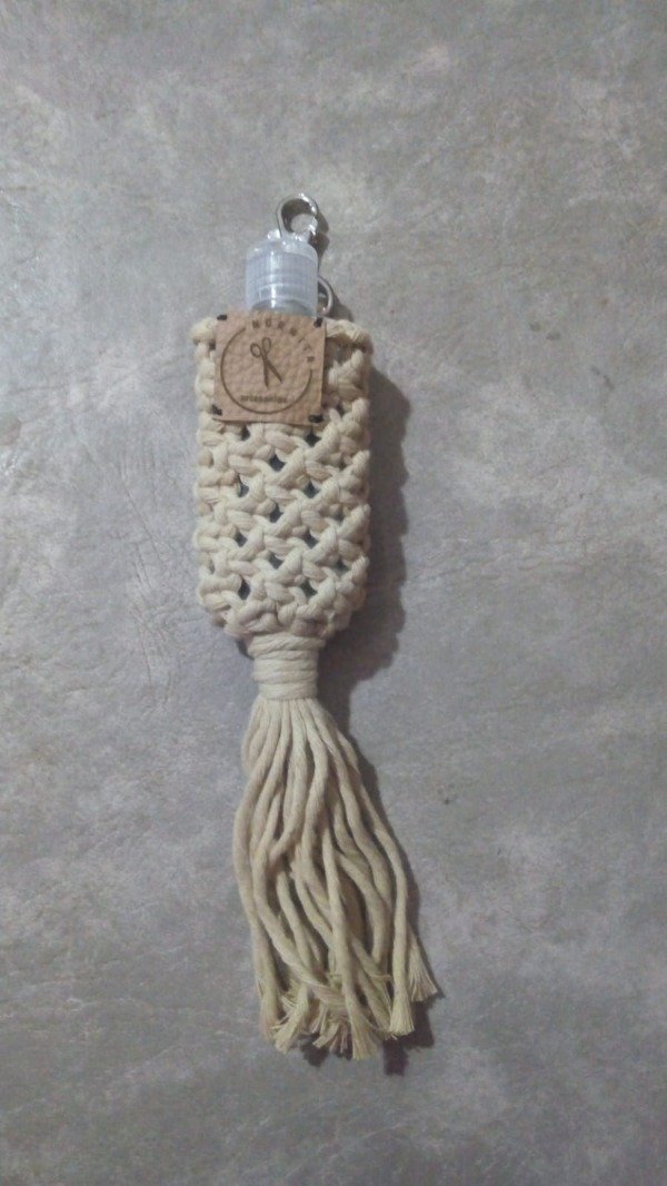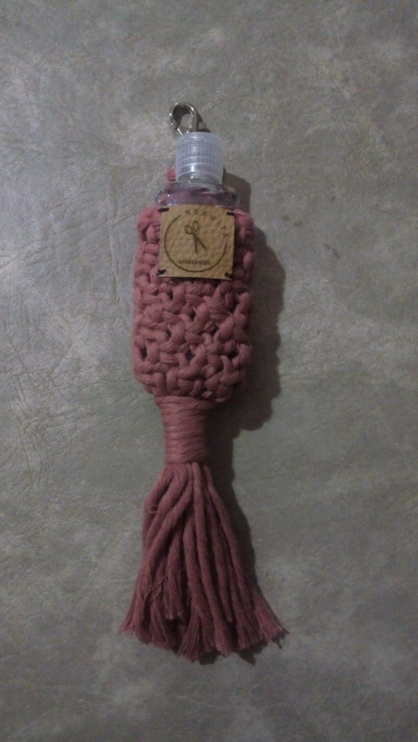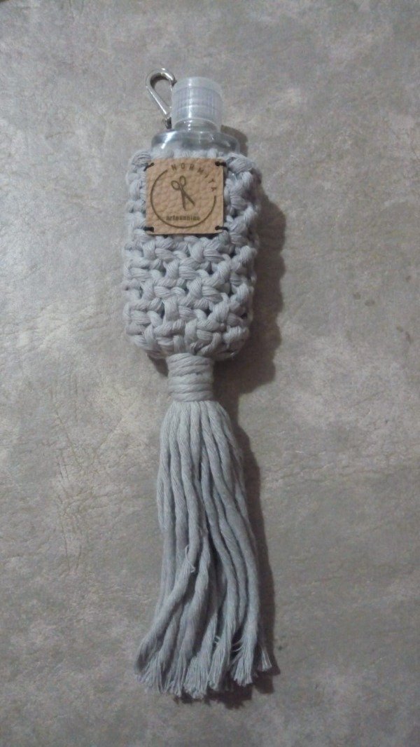 Este porta alcohol en gel está realizado artesanalmente en macramé, ideal para llevar colgado en la cartera, mochila o tener siempre a mano en el hogar o lugar de trabajo.