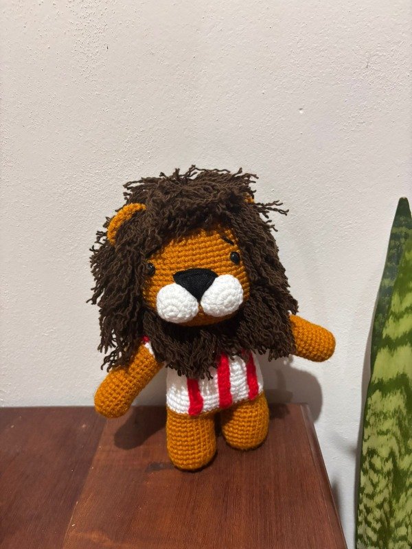 Este adorable leoncito de Estudiantes de La Plata está tejido completamente a mano con lana y relleno de vellón. Con su camiseta albirroja y su melena llena de carácter, representa al clásico león pincha con toda la ternura del crochet.