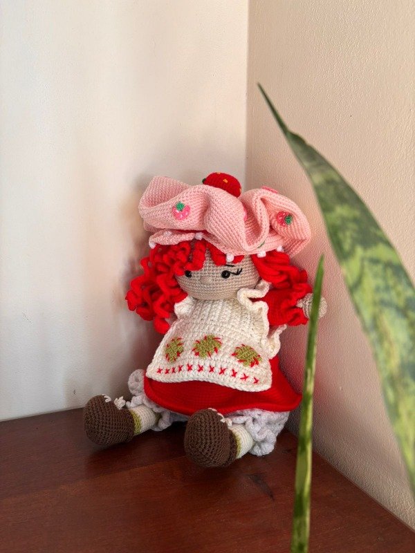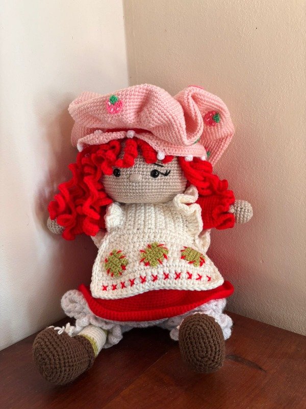 Nuestra muñeca de Frutillita está realizada completamente en lana, tejida a mano con mucho amor y dedicación.